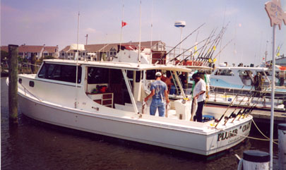 The Plumb Crazy is a 40' fiberglass custom Bay-built fishing machine with heat and air conditioning. She has a large roomy cabin and an extra large bathroom (it's called a head) with running water.